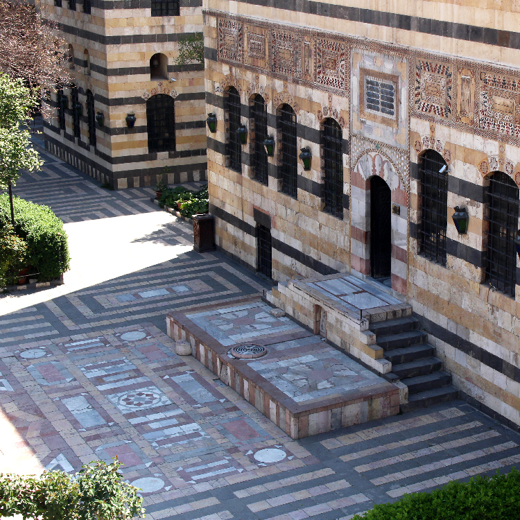 Al-‘Azm Palace, built between 1749–1751 (1163–1165 AH) for governor of Damascus As‘ad Pasha al-‘Azm, is one of the most important and beautiful examples of domestic architecture in Damascus. As‘ad, unlike any other imperial official in the city, governed for fourteen consecutive years (1743–1757 AD/1156–1170 AH) and was not a foreign transplant but hailed from a Syrian family destined to have a long history in leadership. While the entire ‘Azm family made their mark on Damascus, architectural projects were a special focus of As‘ad’s leadership: he also built the Khan As‘ad Pasha (featured on this website), as well as numerous other construction and restoration projects in Damascus and along the Hajj pilgrimage route.