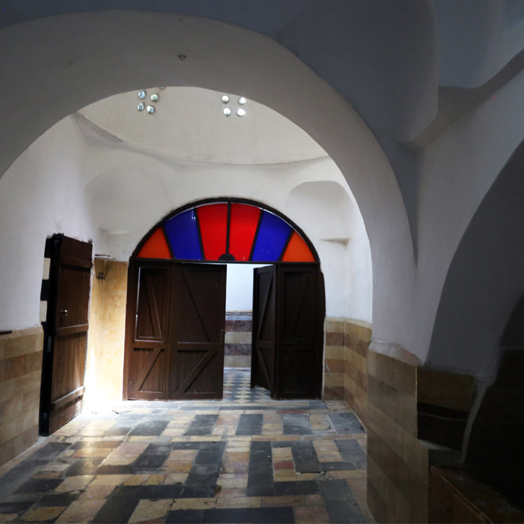 The chapel is arranged in a simple L-shape covered with a series of cross vaults. Archaeological excavations undertaken by Eustache de Lorey in 1921 (1339 AH) uncovered the remains of an ancient wall, altars, and inscriptions at the site, suggesting that it has been used for religious worship since pre-Christian times, possibly as a temple connected to the storm god Hadad. Lorey’s excavations also revealed that the site of Ananias Chapel was once the home of a Byzantine-era church, destroyed and replaced with a mosque under Saladin. Saladin’s mosque eventually disappeared as well, but the underground chapel has survived as possibly the only example of early Christian architecture left in Damascus.